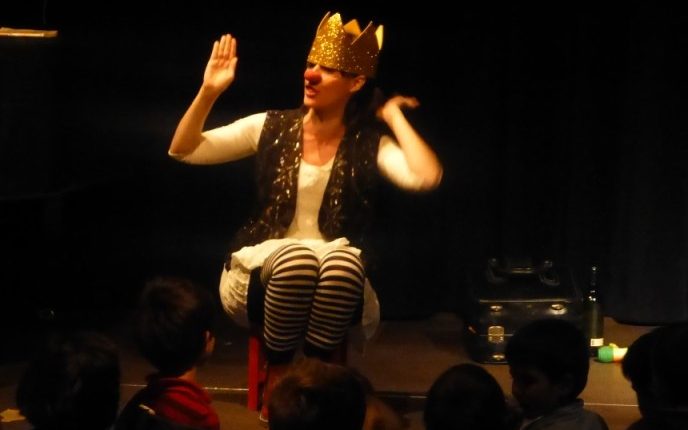 Com explicar una història universal amb un nas de clown, una cadireta petita petita i una maleta com a únic equipatge…això sí amb la complicitat i l’ajuda de tots els prínceps i princeses que conformen el públic.
